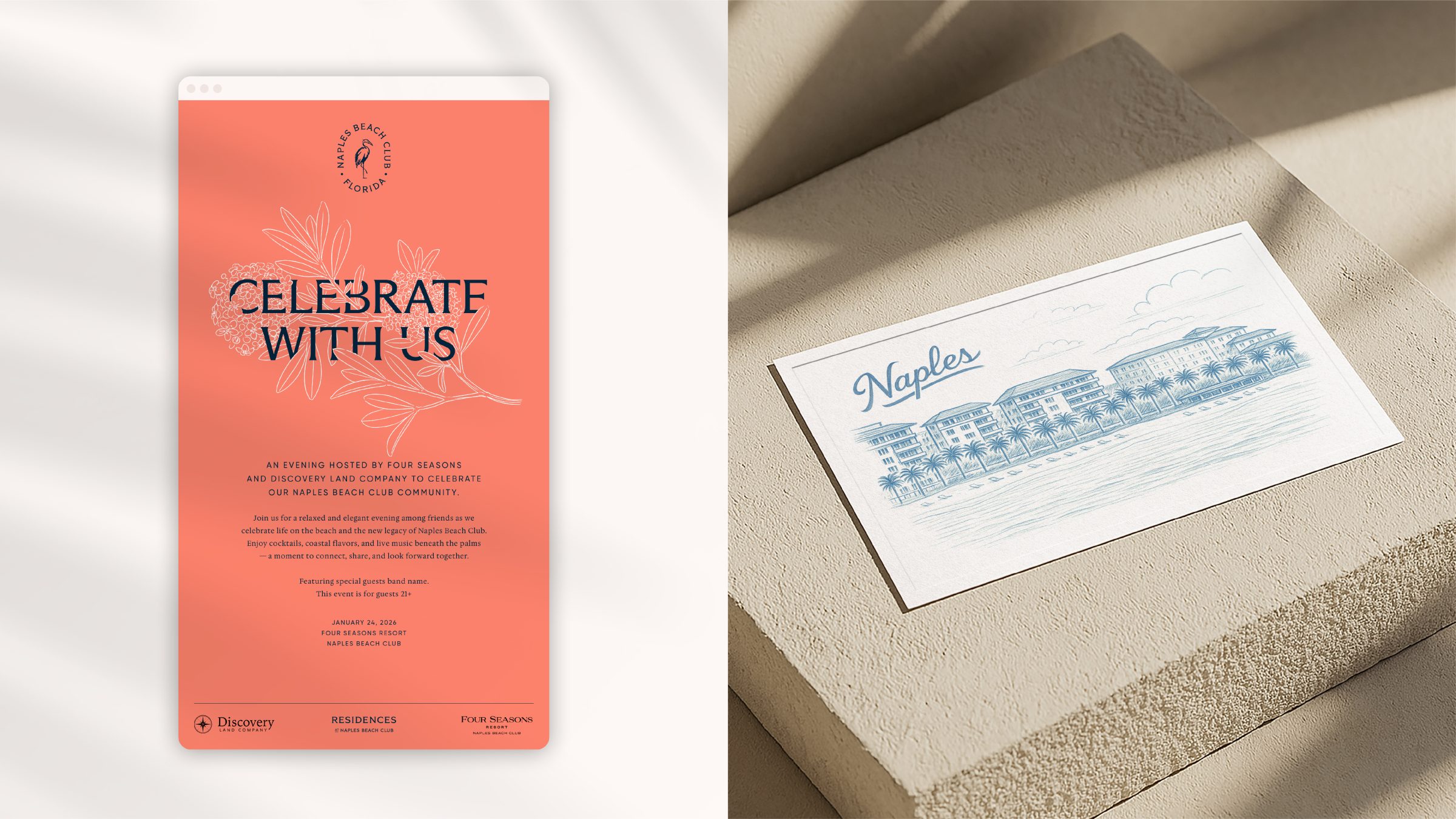 In partnership with BDT & MSD and Discovery Land Co, King & Partners was engaged to develop the brand identity, collateral suite, sales materials, custom illustrations, and copywriting, for the new crown jewel of the gulf coast. Naples Beach Club is a limited collection of 58 beachside residences and 95 golfside residences, set on a 125-acre property, complete with golf course, racquet club, spa, dining outlets, and beyond.